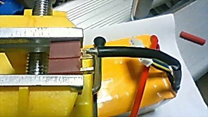 通常はこの様に半田されて来てますのでこれを下記の様に切れるニッパ等で三角面にする。 |